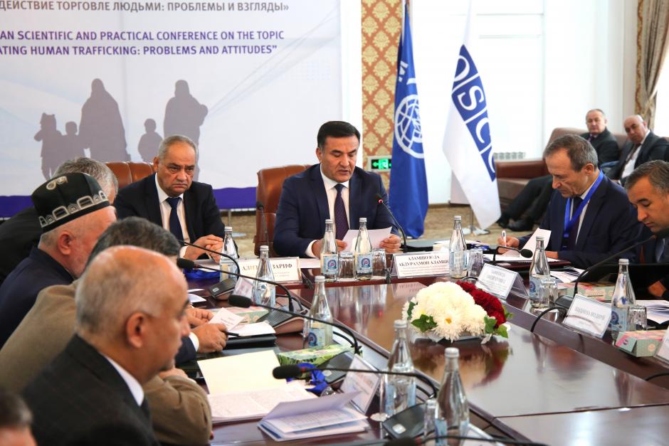 Representatives from the Inter-Ministerial Commission on Combating Trafficking in Human Beings, researchers, government officials, and non-governmental and international organizations come together for the first high-level Republican Conference titled “Combating Trafficking in Human Beings: Challenges and Perspectives”, Dushanbe, 26 October 2023.