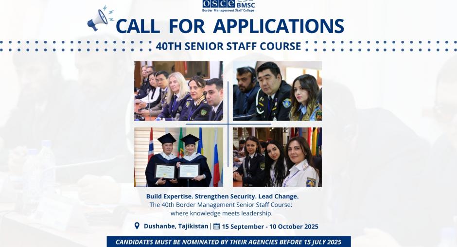 The Organization for Security and Co-operation in Europe (OSCE) is pleased to announce that the OSCE Border Management Staff College (OSCE BMSC) is launching a new call for applicants for its 40th Border Management Senior Staff Course from 15 September to 10 October 2025 in Dushanbe, Tajikistan.