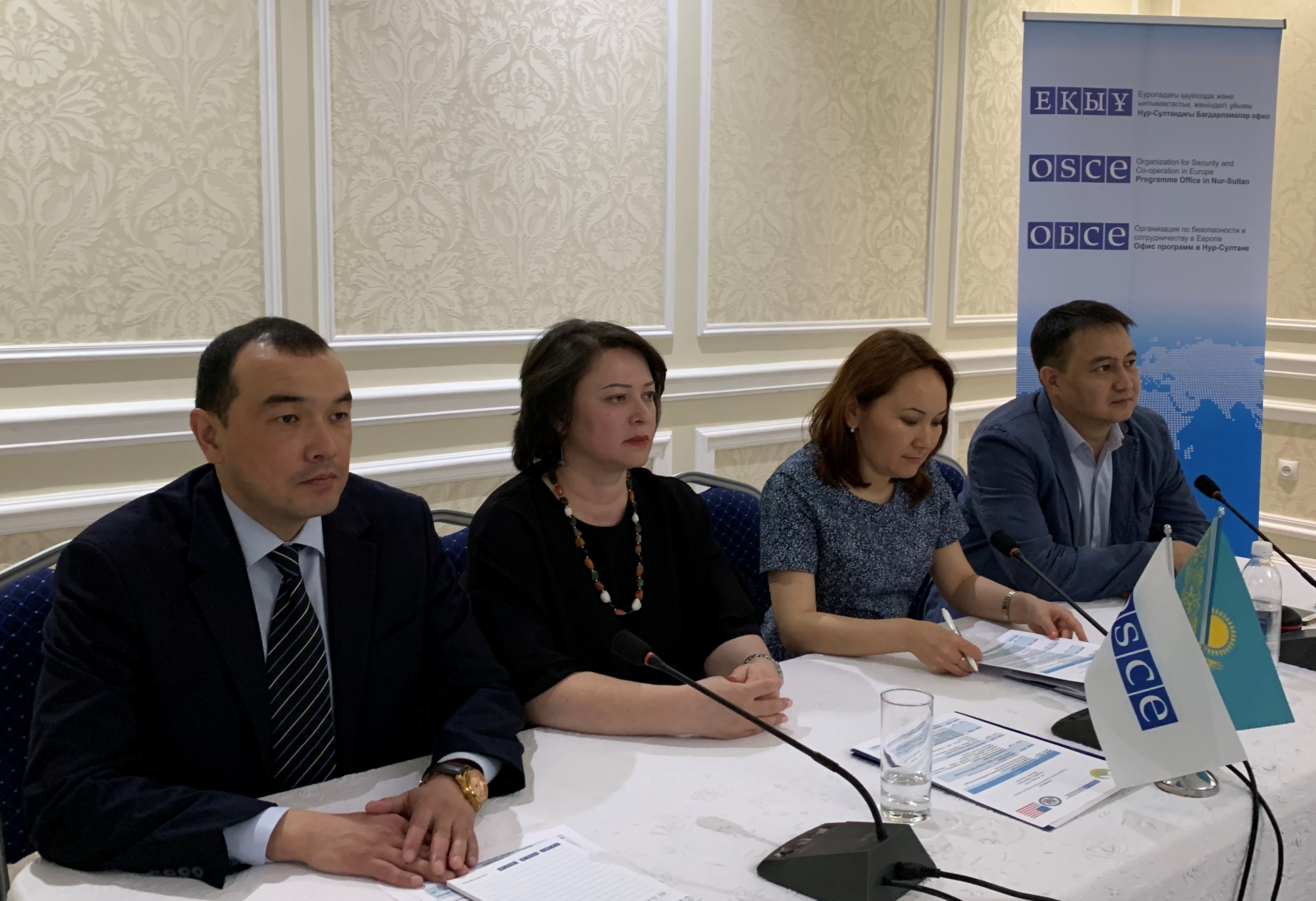 Khadicha Abysheva (centre-left), President of the Legal Centre for Women’s Initiatives ‘Sana Sezim’, presents international and national anti-trafficking legislation, Shymkent, 29 April 2019.