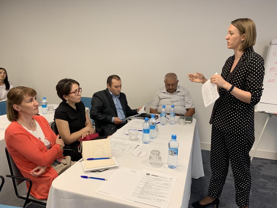 Trainer Yulia Dushkina clarifies the definition of the organic pollutant emissions at the OSCE-supported seminar, Almaty, 21 June 2019.