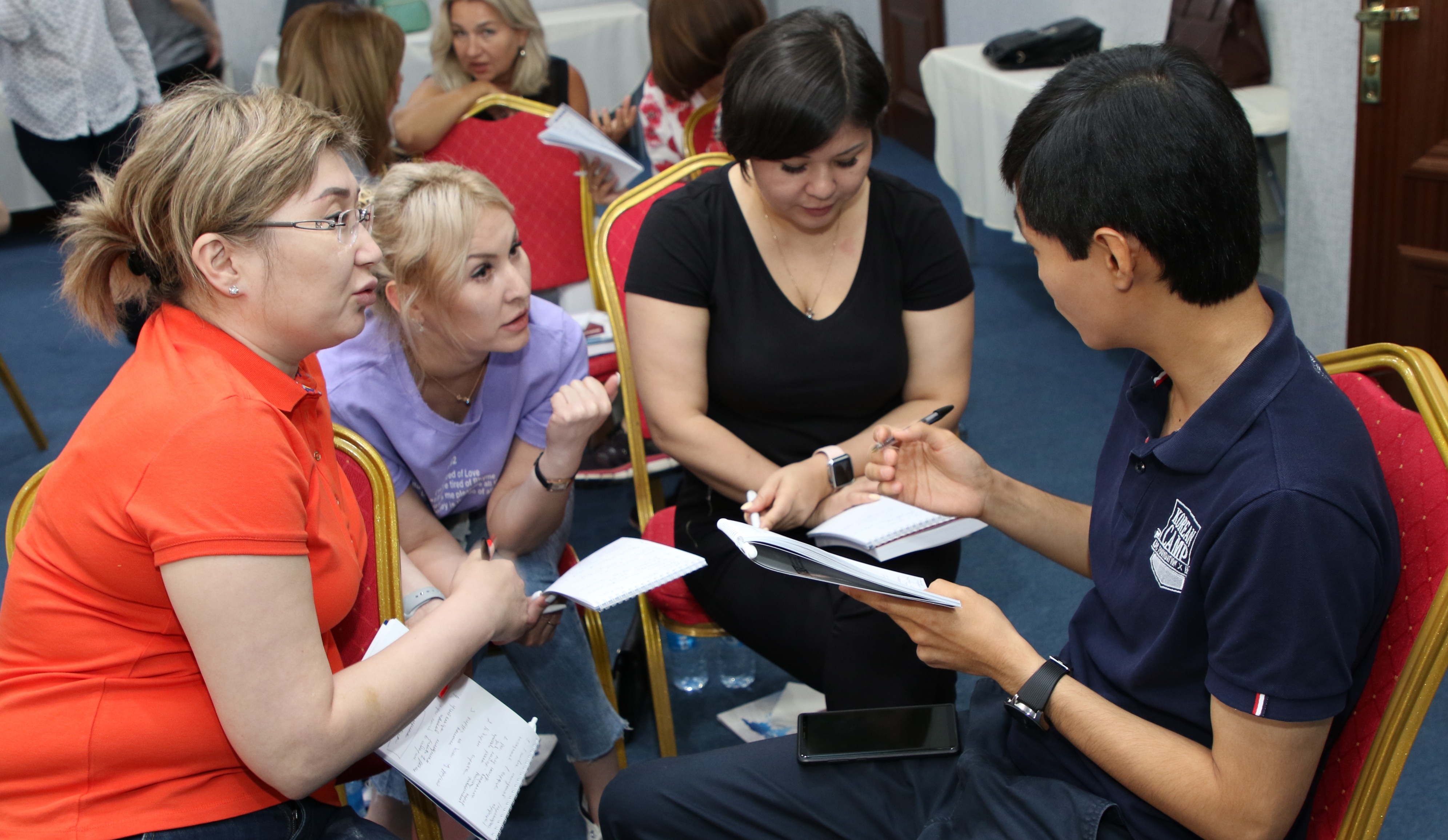 Participants of the train-the-trainer course for defence lawyers during the group working exercise, Almaty, 22 June 2019.