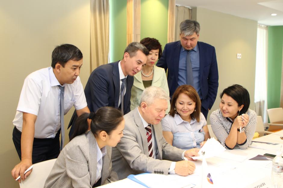 Participants of the training seminar on enhancing co-operation between courts and media during the group working exercise, Almaty, 2 July 2019.