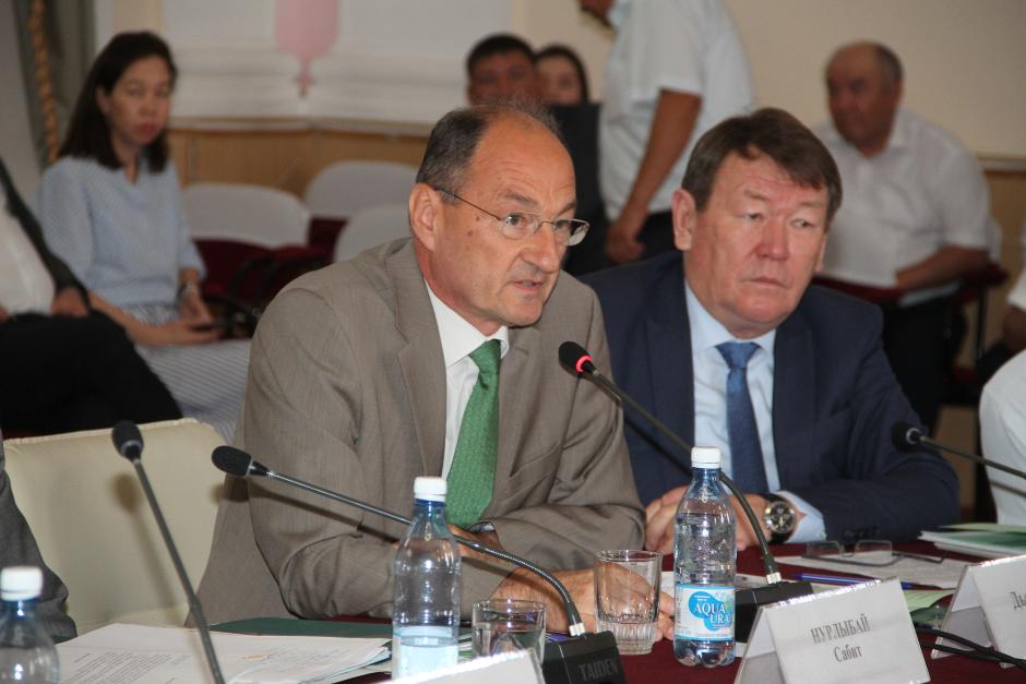 Ambassador György Szabó, Head of the OSCE Programme Office in Nur-Sultan, speaking at the roundtable on sustainable management of the Zhaiyk (Ural) river basin ecosystem, Oral, 26 July 2019.