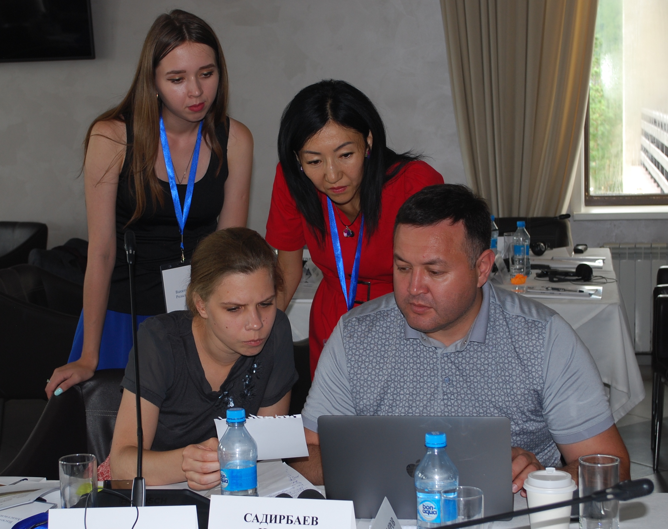 Participants gather for a group exercise on using multimedia to reach a larger audience, Borovoye, 1 August 2019.