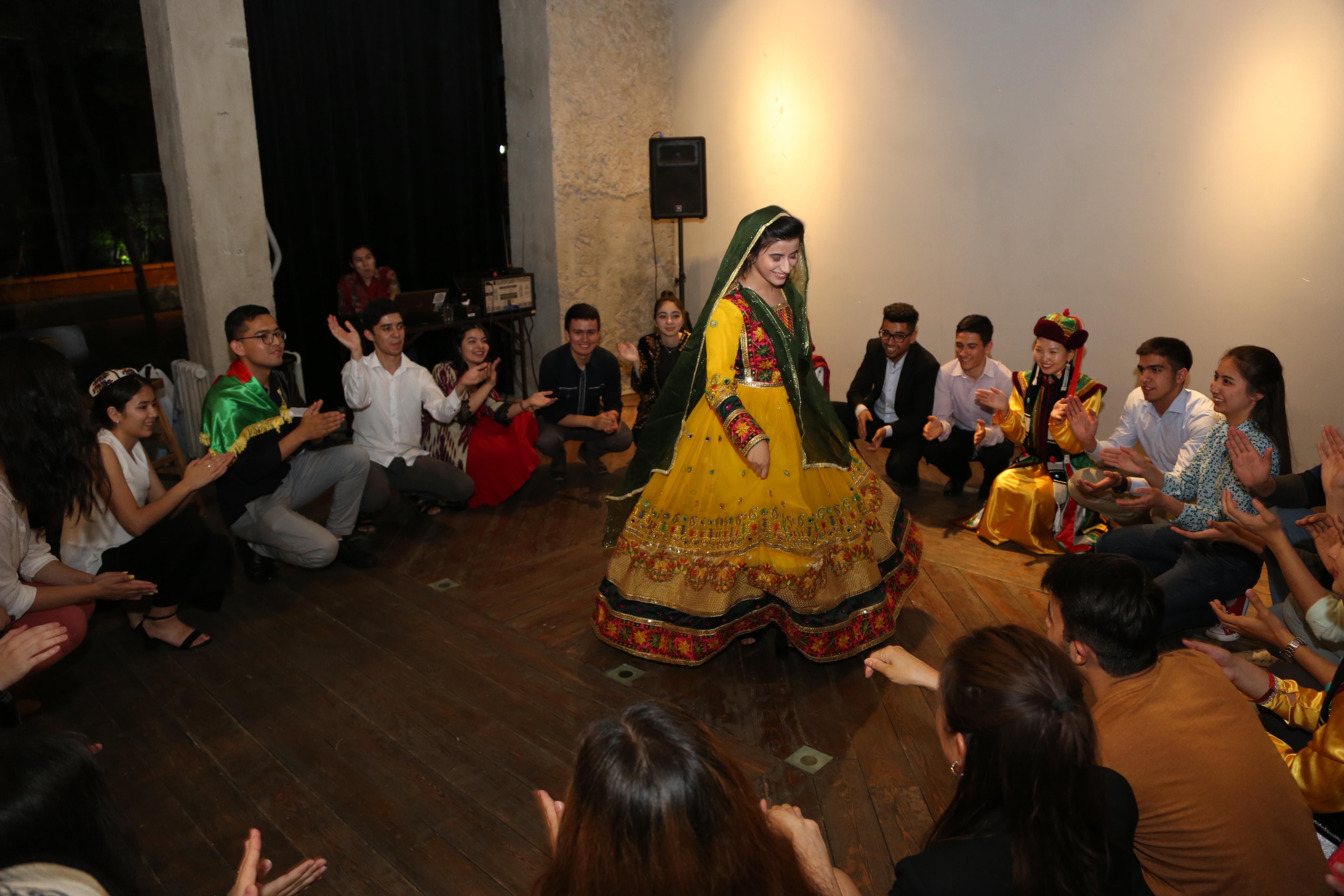 A student from Afghanistan presents a folk dance at the talent show. Almaty, 27 June 2019.