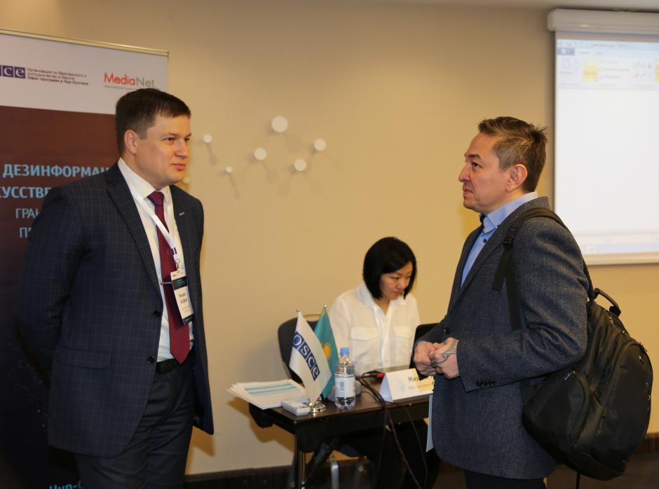 Workshop participants discusses the importance of preventing disinformation and ensuring freedom of media in the region, Nur-Sultan, 18 October 2019.