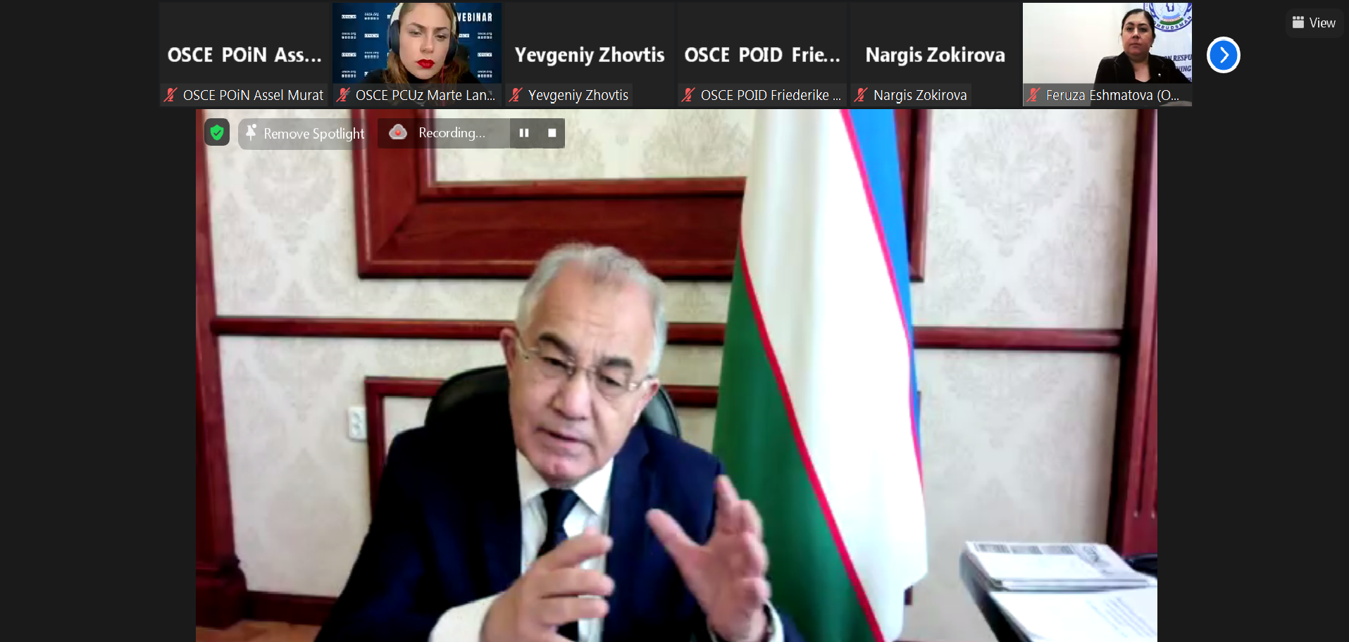 Prof. Akmal Saidov, First Deputy Speaker of the Legislative Chamber of the Oliy Mazhlis of the Republic of Uzbekistan, Director of the National Human Rights Centre of the Republic of Uzbekistan, delivers a speech during the conference, 29 October 2021.