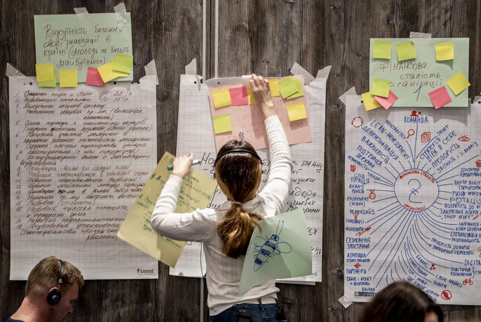Activists and experts brainstorm on the ways to enhance sustainability of civil society organisations at the event organized by the OSCE Project Co-ordinator to present the concept of legislation on social entrepreneurship in Ukraine, Kyiv, 11 April 2019.