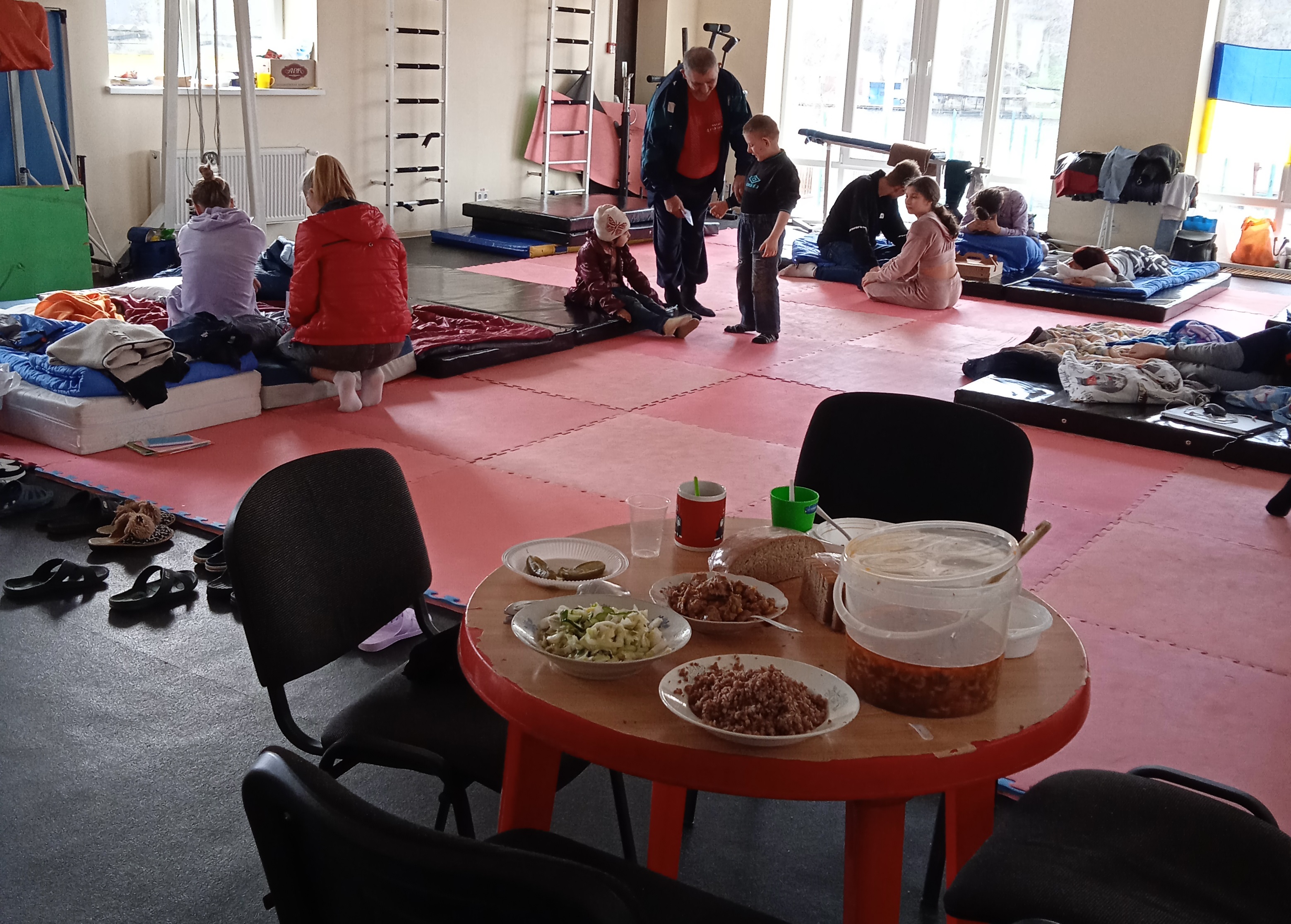 Lunch for the displaced people is provided in shelter in Vinnytsia, 12 April 2022.