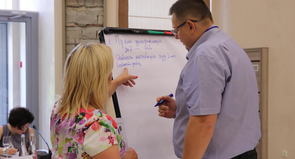 Ukrainian judges from across the country learn to identify and address gender inequalities and discrimination policies at a training, organised by the OSCE Project Co-ordinator near Kyiv on 3 August 2018. This effort, implemented in partnership with the National School of Judges, aims to create a network of gender focal points who will act as “change agents” for fostering gender sensitive practices in the judiciary. (Anastasia Fomina/OSCE)