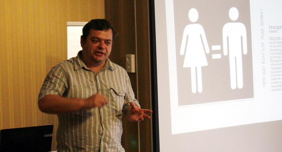 Media trainer Serhiy Shturhetsky explains specifics of gender-sensitive journalism to media professionals at a training course organised by the OSCE Project Co-ordinator in Ukraine, Odesa, 4 September 2014. (OSCE/Tetyana Medun)