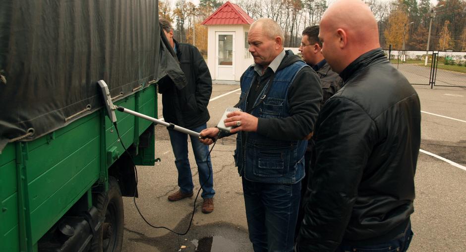 As radiation may be emitted by metal scrap or industrial materials, environmental inspectors and border guards practice cargo checking with use of special equipment. (OSCE/Dmytro Ostapchuk)