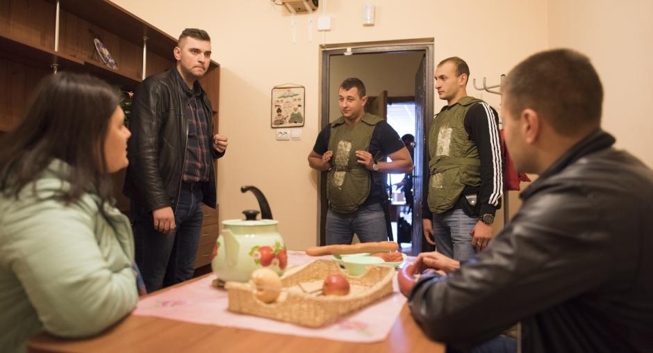 Officers of National Police trained to respond to domestic violence incidents in an interactive training room equipped by the OSCE Project Co-ordinator in Ukraine. Dnipro, 17 October 2018 (Yevhen Maloletka/OSCE)