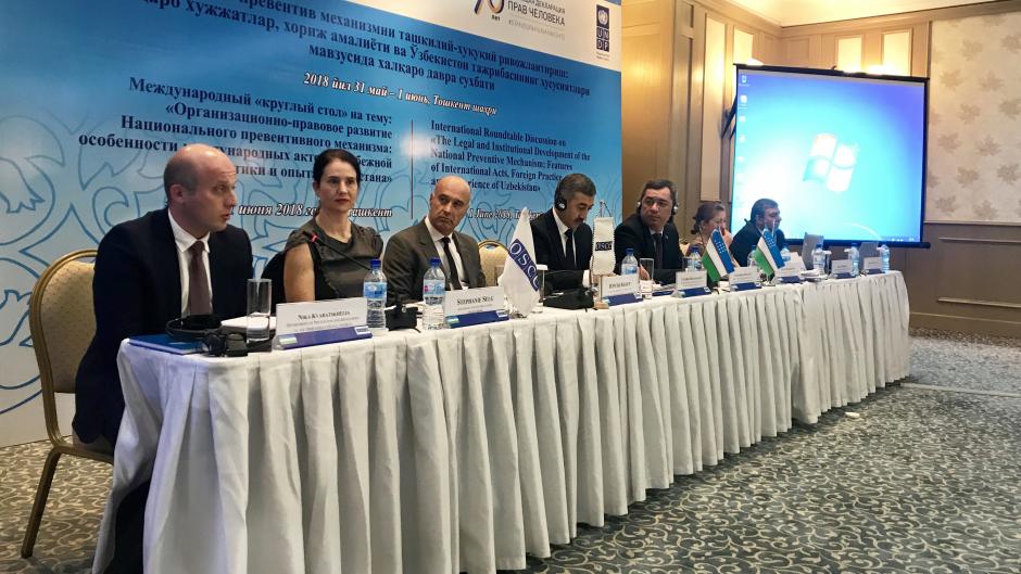 Panellists during the International Roundtable discussion on the establishment of a National Preventive Mechanism in Uzbekistan, Tashkent, 31 May 2018.