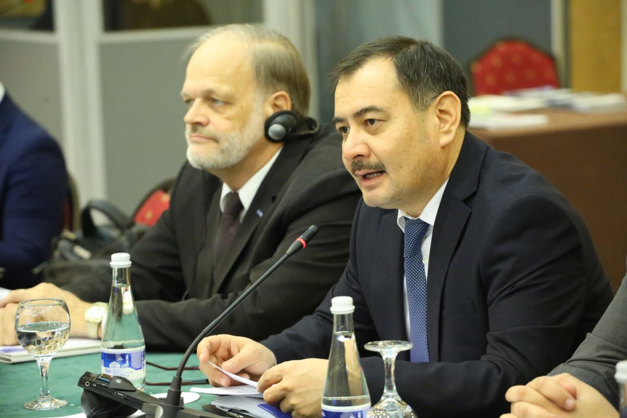 The Deputy Chairman of the State Committee of the Republic of Uzbekistan on Ecology and Environmental Protection, Aybek Adhamjanov, and the OSCE Project Co-ordinator in Uzbekistan, Ambassador John MacGregor, during the opening session of the workshop on integrated domestic waste management, Tashkent, 27 November.