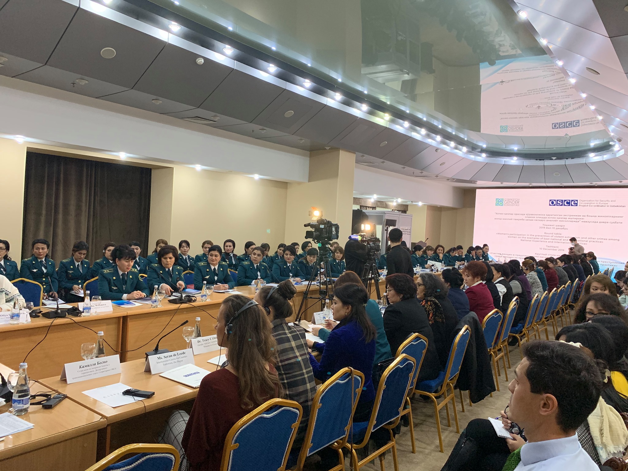 Participants of a roundtable discussion on national and international good practices and challenges in engaging women in activities held in Tashkent, 10 December 2019.