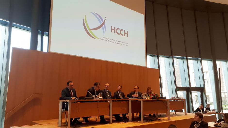 Ruslanbek Davletov, Minister of Justice of Uzbekistan, making a statement at the meeting of the Council on General Affairs and Policy of the Hague Conference on Private Property Law after Uzbekistan's acceptance as a member-state, 4 March 2020.