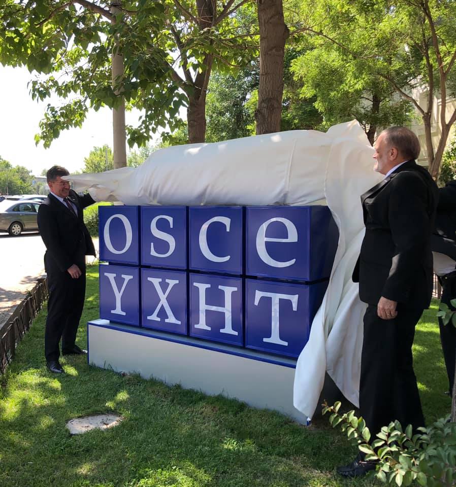 The 2019 OSCE Chairperson-in-Office and Slovakia’s Foreign and European Affairs Minister Miroslav Lajčák and Project Co-ordinator John MacGregor at the opening of the new offices of the OSCE Project Co-ordinator’s premises in Uzbekistan in 2019.