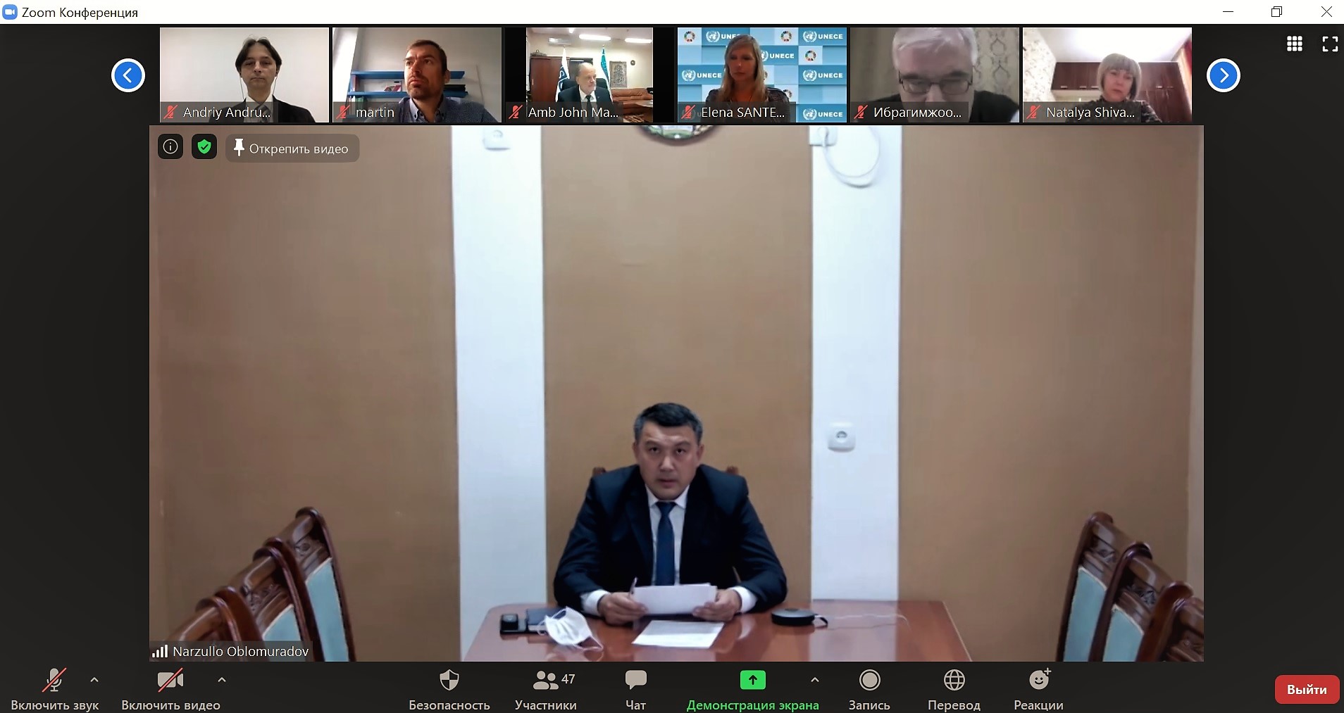 Narzullo Oblomudarov, First Deputy Chairman of the State committee of the Republic of Uzbekistan on ecology and environmental protection, opening the meeting and welcoming the participants during the final online workshop, Tashkent, 12 November.