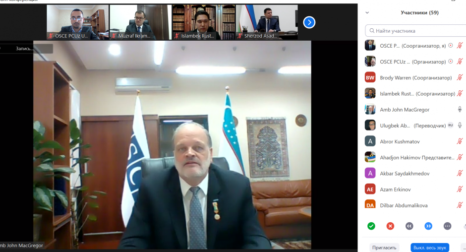 The OSCE Project Co-ordinator in Uzbekistan (PCUz) held an online seminar on the outcomes of studying a number of international conventions of the Hague Conference on Private International Law (HCCH) on 14 December 2020. The event was organized in co-operation with the Ministry of Justice and Ministry of Foreign Affairs of Uzbekistan, the non-governmental organization “Legal Problems Research Center”, and the Hague Conference on Private International Law.