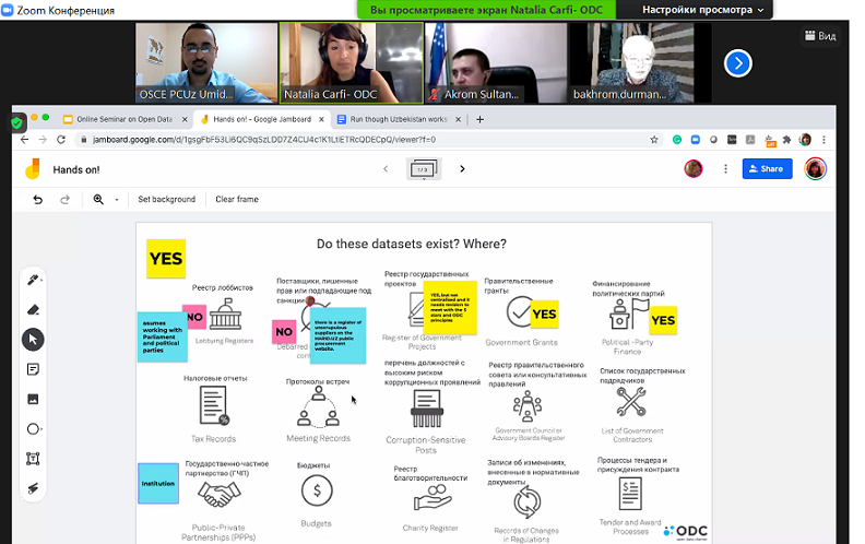 Natalia Carfi, Deputy Director of the International Open Data Charter, making a presentation on Open Data for Anti-corruption, Tashkent, 18 December 2020.