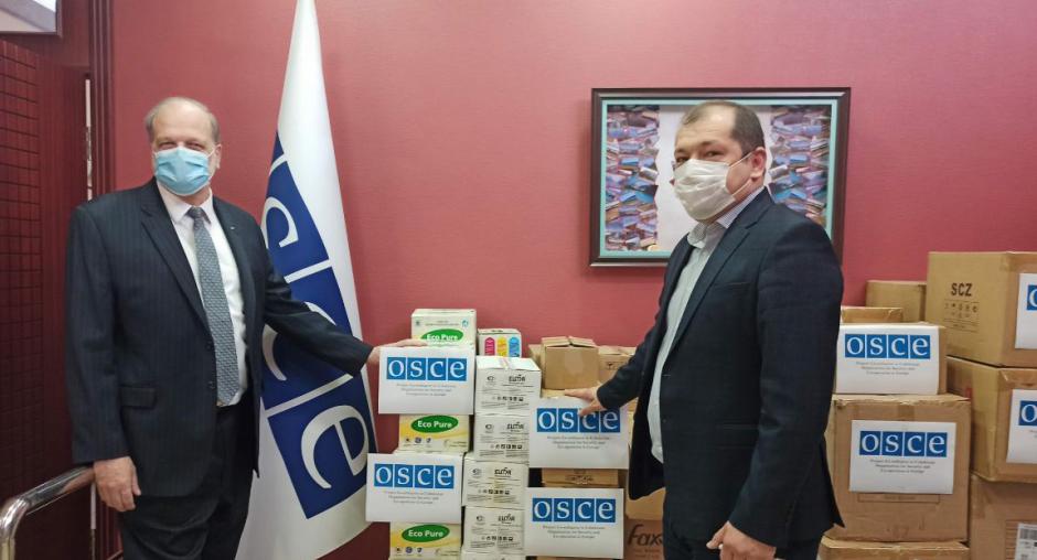 On 5 February, the OSCE Project Co-ordinator in Uzbekistan (PCUz), John MacGregor handed over personal protection equipment and humanitarian aid to the Deputy Director of the Agency for External Labour Migration under the Ministry of Employment and Labour Relations of the Republic of Uzbekistan, Hojiakbar Fayzullahodjayev.