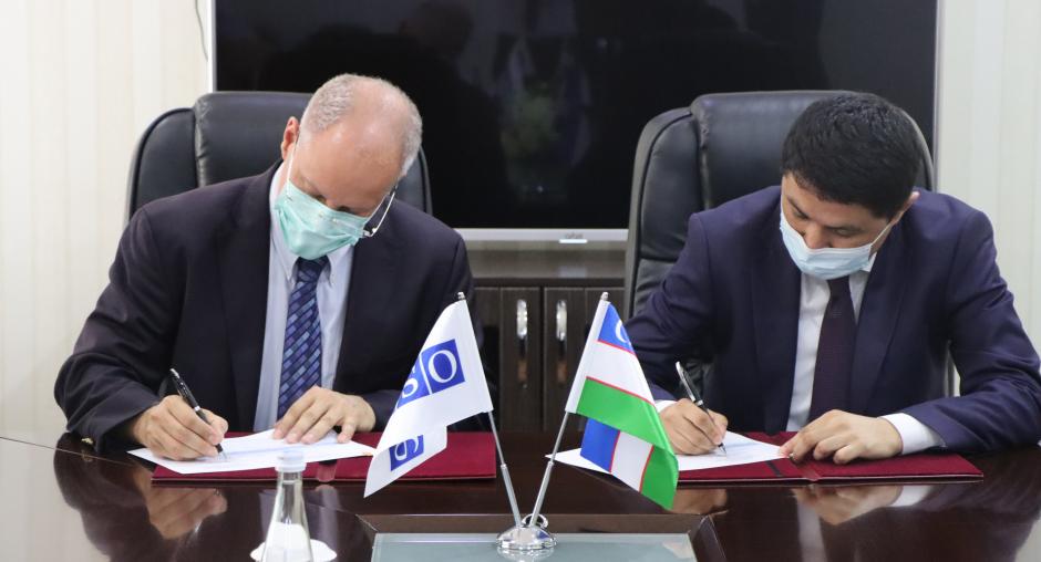 On 5 July 2021, the OSCE Project Co-ordinator in Uzbekistan, Pierre von Arx, met with Akmal Burkhanov, the Director of the Anti-corruption Agency in Uzbekistan, to discuss co-operation on implementation of a joint 2021-2022 project and to sign a joint work plan.