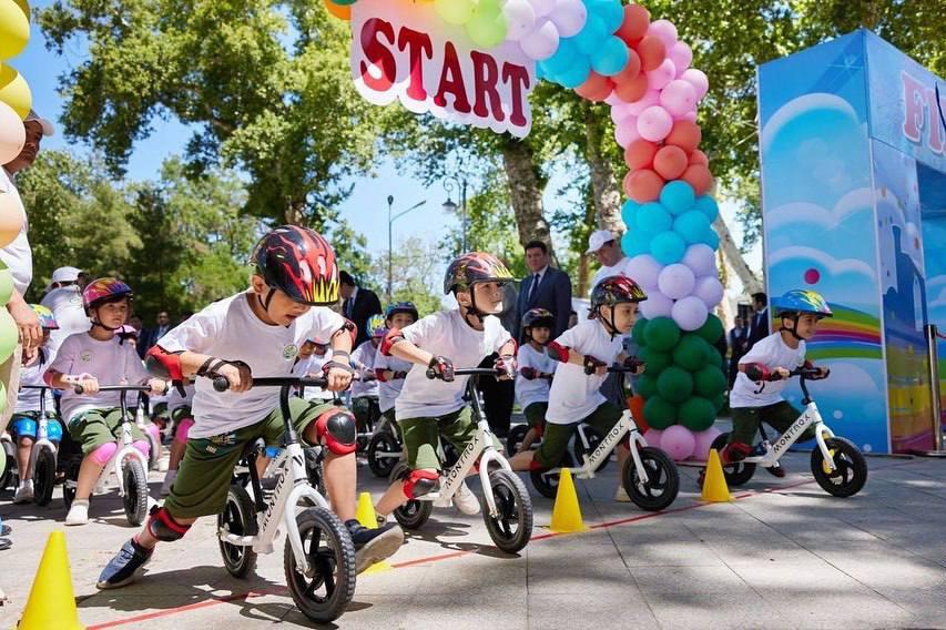 Children participating in the II cycling event in Samarkand, 30 May 2022