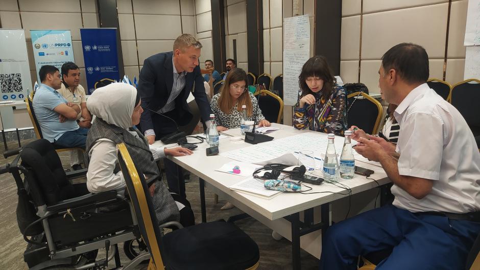 Participants in the training course on public speaking skills for persons with disabilities in view of Uzbekistan's next parliamentary elections, Tashkent, 26-30 August 2023.