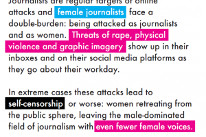 The #SOFJO campaign, spearheaded by the Representative on Freedom of the Media of the Organization for Security and Co-operation in Europe, sheds light on the issue of online abuse of female journalists. With the goal of protecting plurality in the media, the campaign supports female journalists, pushes for more comprehensive research on the topic and engages a wide audience, including policy makers, media houses and everyday citizens, in finding solutions to the problem.