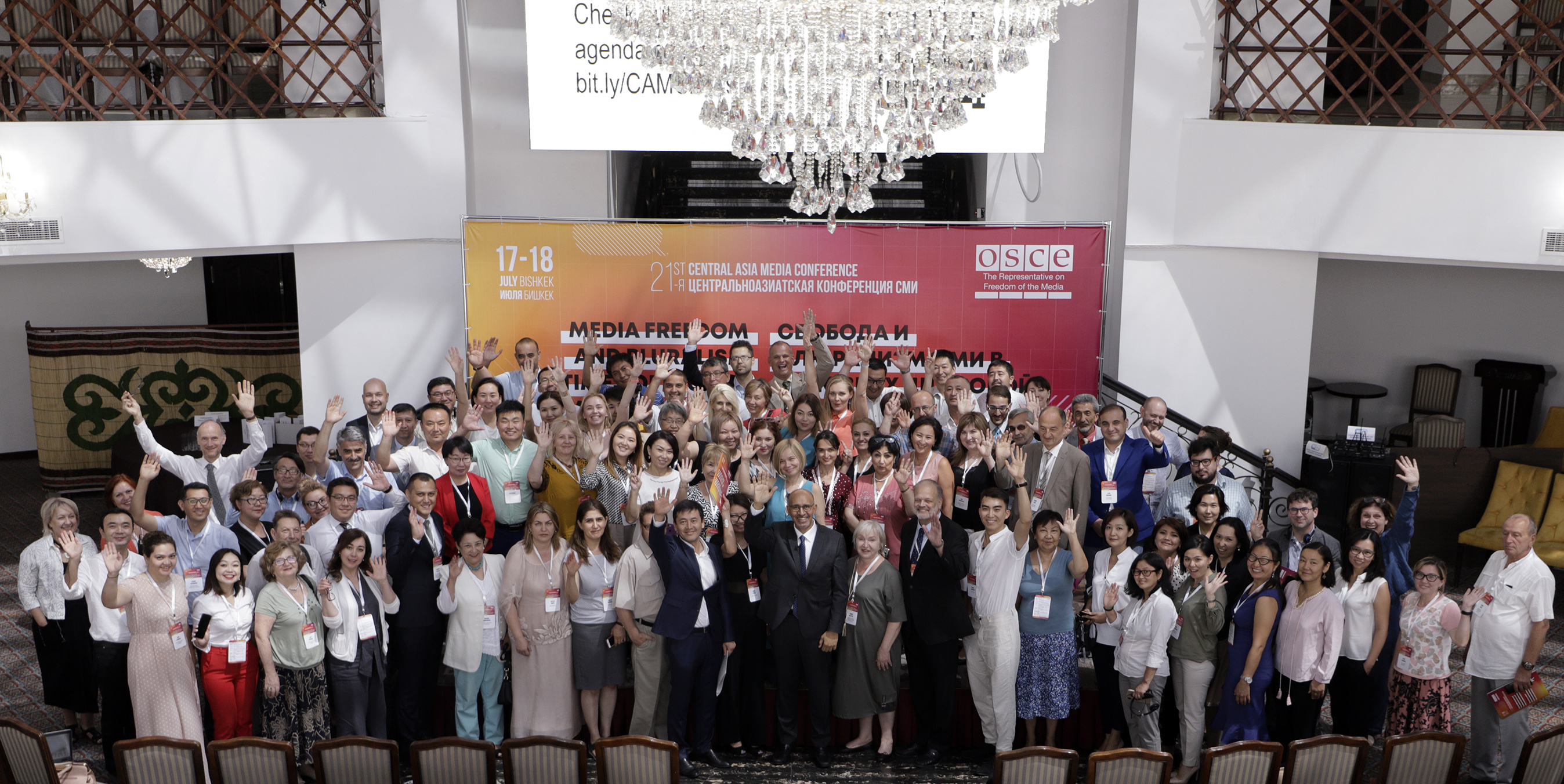 Participants of the 21st Central Asia Media Conference pose for a group photo, Bishkek, 17 July 2019.