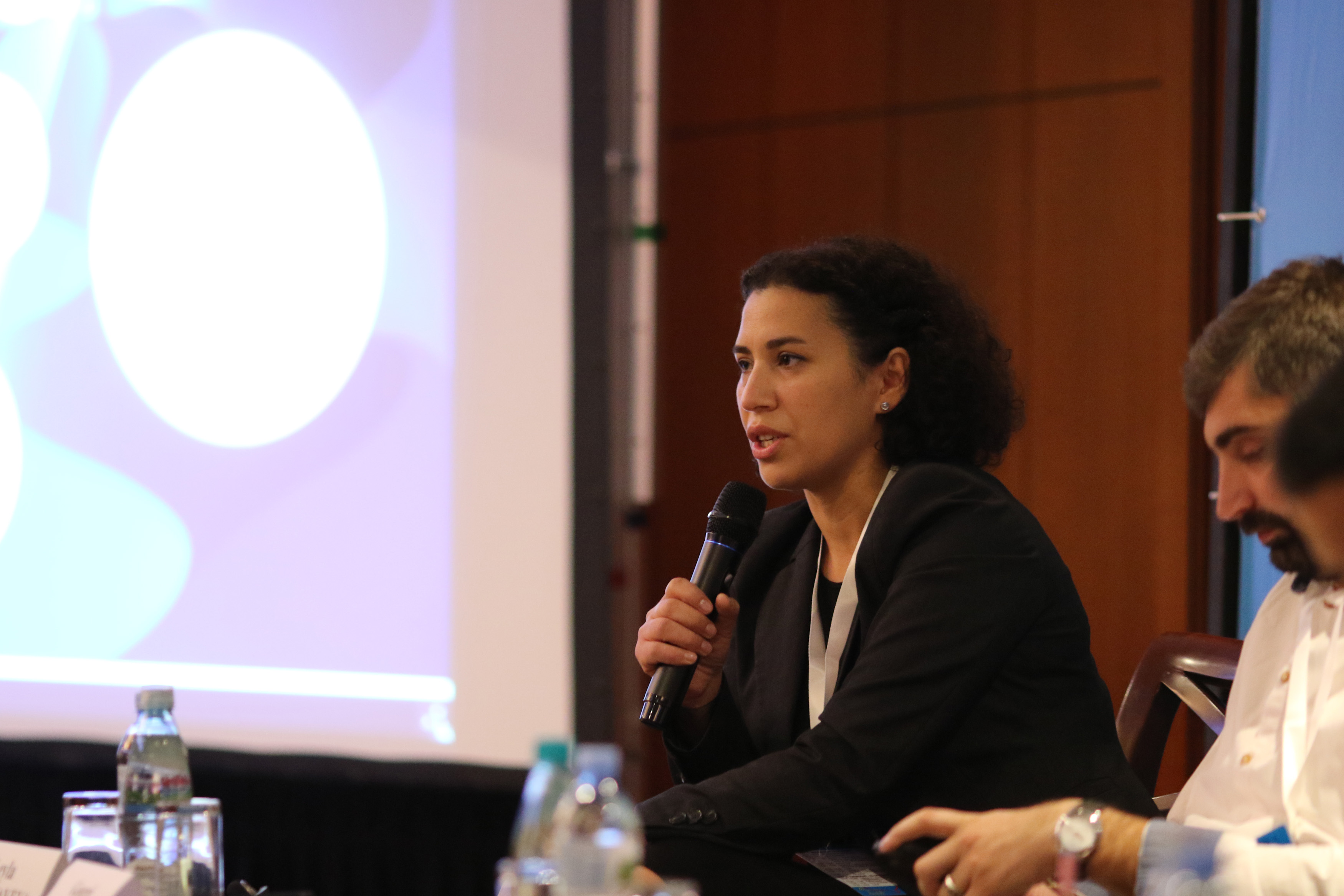 Leyla Mustafayeva, Editor-in-Сhief of Faktyoxla.info fact-checking platform, speaking during the first session at the 16th South Caucasus Media Conference, Tbilisi, 9 October 2019.