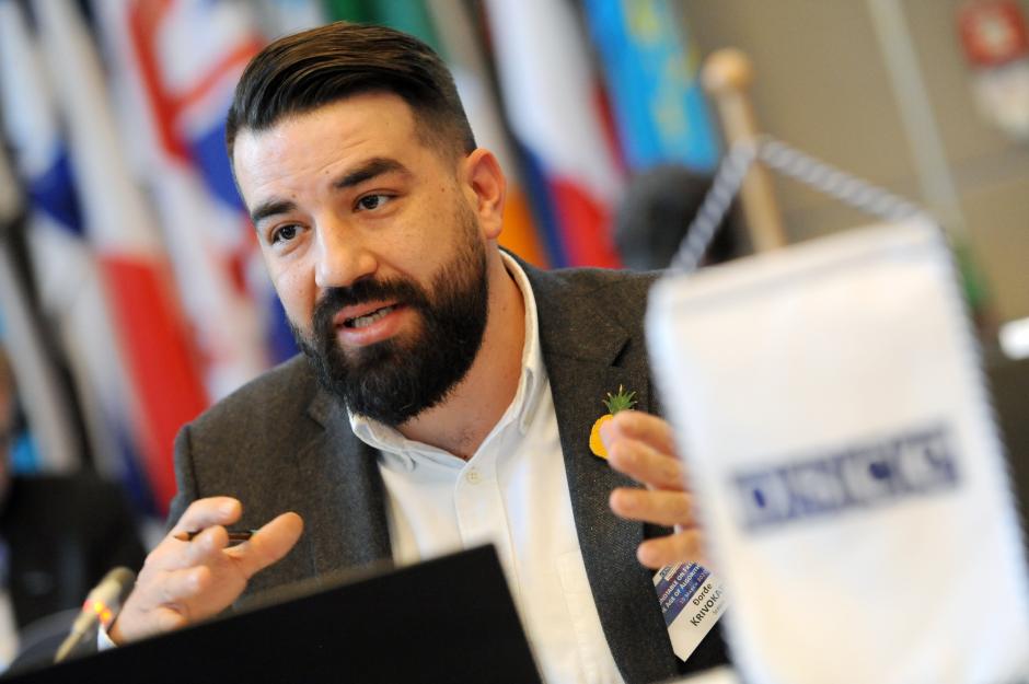 Djordje Krivokapic, Lawyer, addressing the roundtable on the impact of artificial intelligence on freedom of expression, in Vienna, 10 March 2020.