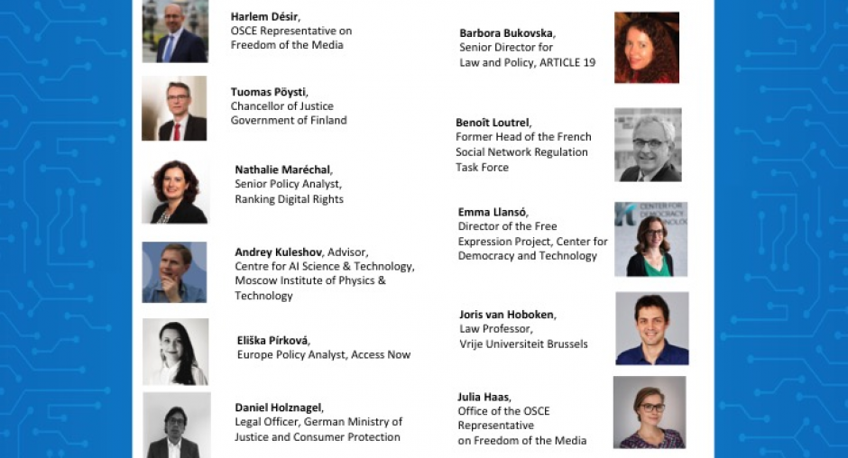The event brought together a broad audience of 200 participants, including experts from participating States, civil society, academia, the tech industry and other international stakeholders to enable interactive discussions. The speakers included Nathalie Maréchal (Senior Policy Analyst, Ranking Digital Rights); Andrey Kuleshov (Advisor, Centre for AI Science and Technology, Moscow Institute of Physics and Technology); Benoît Loutrel (Former Head of the French Social Network Regulation Task Force); Eliška Pírková (Europe Policy Analyst, Access Now); Daniel Holznagel (Legal Officer, German Ministry of Justice and Consumer Protection), Joris van Hoboken (Law Professor, Vrije Universiteit Brussels); Emma Llansó (Director of the Free Expression Project, Center for Democracy and Technology); Tuomas Pöysti (Chancellor of Justice of the Government of Finland); and Barbora Bukovska (Senior Director for Law and Policy, ARTICLE 19).