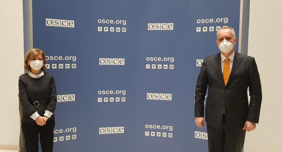 The OSCE Representative on Freedom of the Media (RFoM), Teresa Ribeiro, met today, 16 February 2021, with Ambassador Andrei Dapkiunas to discuss the state of freedom of expression and media freedom in Belarus.