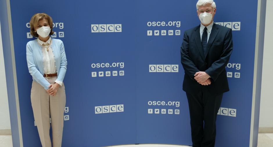 Ribeiro and Nagant de Deuxchaisnes discussed the possibilities for the OSCE, as an intergovernmental organization, to closely collaborate on many media freedom issues. They also noted that it had been a good week, with a successful Supplementary Human Dimension Meeting, focusing on gender equality and bringing together participating States and civil society.