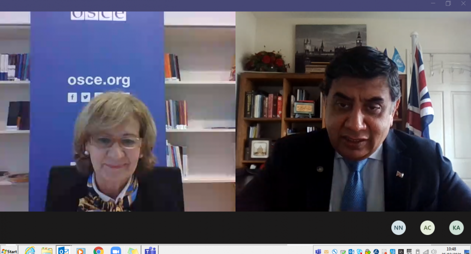 The OSCE Representative on Freedom of the Media (RFoM), Teresa Ribeiro, met with the Minister for South Asia and Commonwealth of the British Government, H.E. Lord Ahmad of Wimbledon, on 25 March 2021, to discuss media freedom developments in the United Kingdom and the OSCE region.
