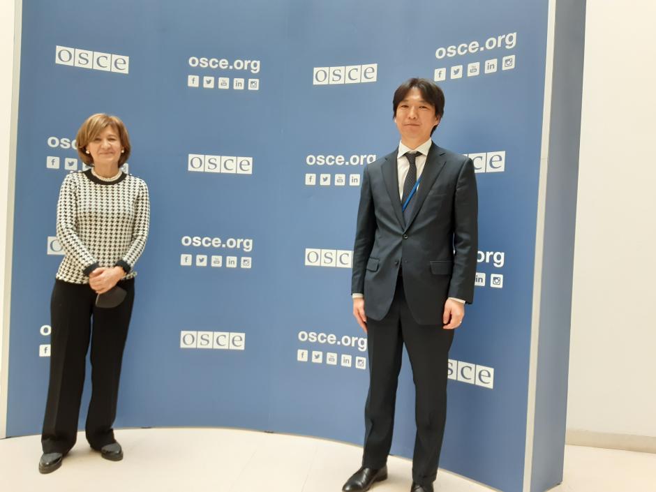 OSCE Representative on Freedom of the Media Teresa Ribeiro meeting with the Permanent Representative of Mongolia to the OSCE, Ambassador Mijiddorj Tsengeg, 24 March 2022.