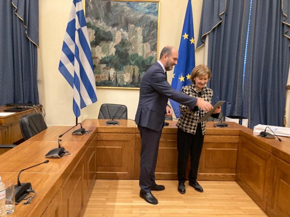 OSCE Representative on Freedom of the Media Teresa Ribeiro during her official visit to Greece from 25 to 26 January where she met amongst others with Member of Parliament, and member of the OSCE PA Hellenic delegation, Dimitris Markopolous.