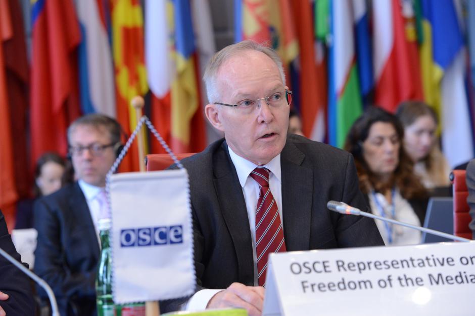 OSCE Representative on Freedom of the Media (RFoM), Jan Braathu, delivering his first report to the OSCE Permanent Council, 10 April.