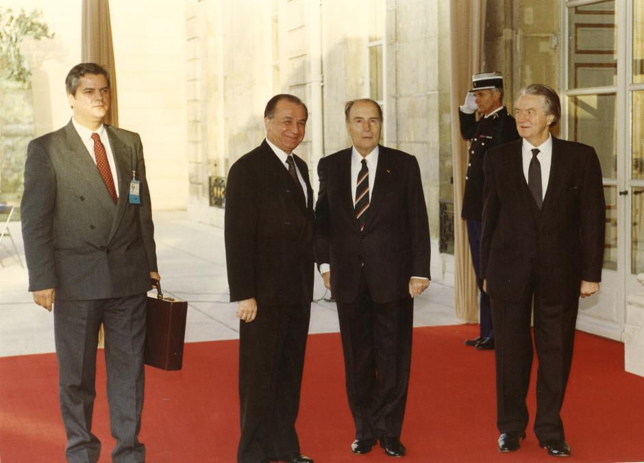 Monsieur Ion ILIESCU, Président de la République de Roumanie, Monsieur Adrian NASTASE, Ministre des Affaires Etrangères, Monsieur François MITTERRAND et Monsieur Roland DUMAS