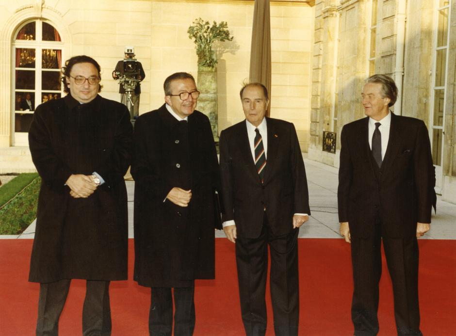 Monsieur Giulio ANDREOTTI, Premier Ministre d'Italie, Monsieur Gianni de MICHELIS, Ministre des Affaires Etrangères, Monsieur François MITTERRAND et Monsieur Roland DUMAS