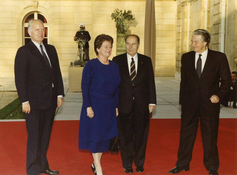 Madame Gro HARLEM BRUNDTLAND, Premier Ministre de la Norvège, Monsieur Thorvald STOLTENBERG, Ministre des Affaires Etrangères, Monsieur François MITTERRAND et Monsieur Roland DUMAS