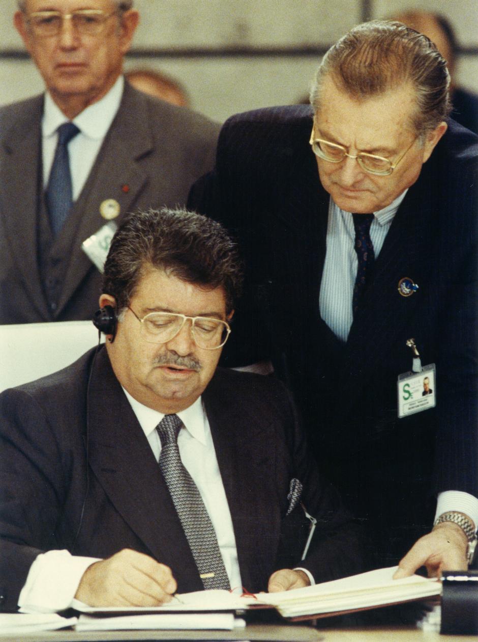 Signature de la Charte de Paris: Centre de Conférences Internationales, Mercredi 21 Novembre 1990. Monsieur Turgut OZAL, Président de la Turquie
