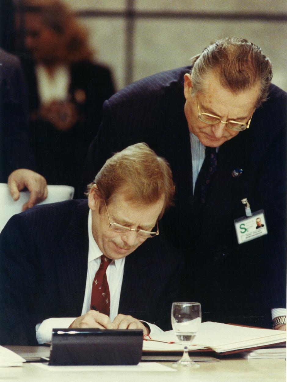 Signature de la Charte de Paris: Centre de Conférences Internationales, Mercredi 21 Novembre 1990. Monsieur Vaclav HAVEL, Président de la République Fédérative Tchèque et Slovaque