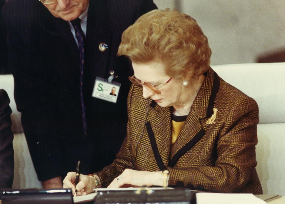 Signature de la Charte de Paris: Centre de Conférences Internationales, Mercredi 21 Novembre 1990. Madame Margaret THATCHER, Premier Ministre de la Grande-Bretagne
