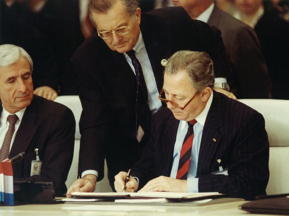 Signature de la Charte de Paris: Centre de Conférences Internationales, Mercredi 21 Novembre 1990. Monsieur Jacques SANTER, Premier Ministre du Luxembourg