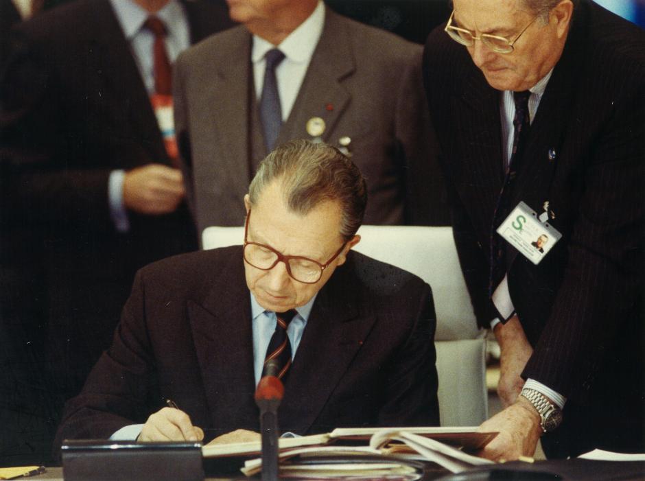 Signature de la Charte de Paris: Centre de Conférences Internationales, Mercredi 21 Novembre 1990. Monsieur Jacques DELORS, Président de la Commission des Communautés Européennes