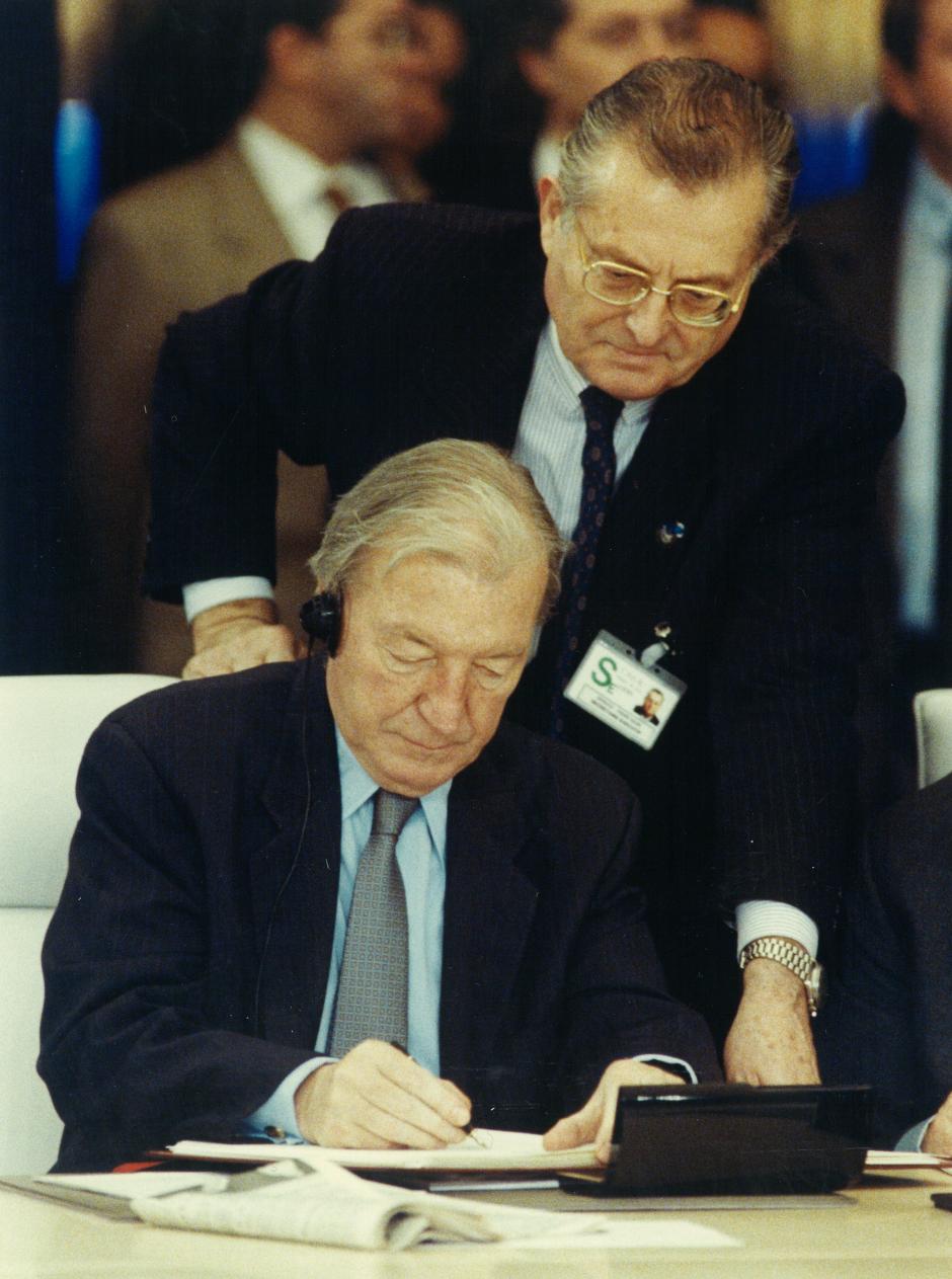 Signature de la Charte de Paris: Centre de Conférences Internationales, Mercredi 21 Novembre 1990. Monsieur Charles J. HAUGHEY, Premier Ministre de l'Irlande