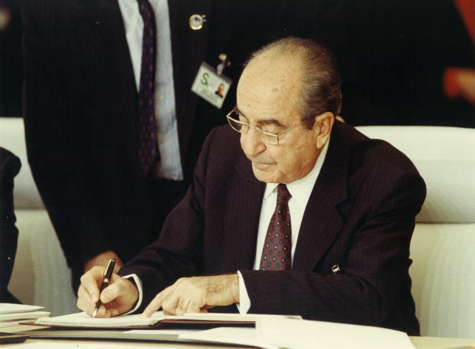 Signature de la Charte de Paris: Centre de Conférences Internationales, Mercredi 21 Novembre 1990. Monsieur Constantin MITSOTAKIS, Premier Ministre de la Grèce